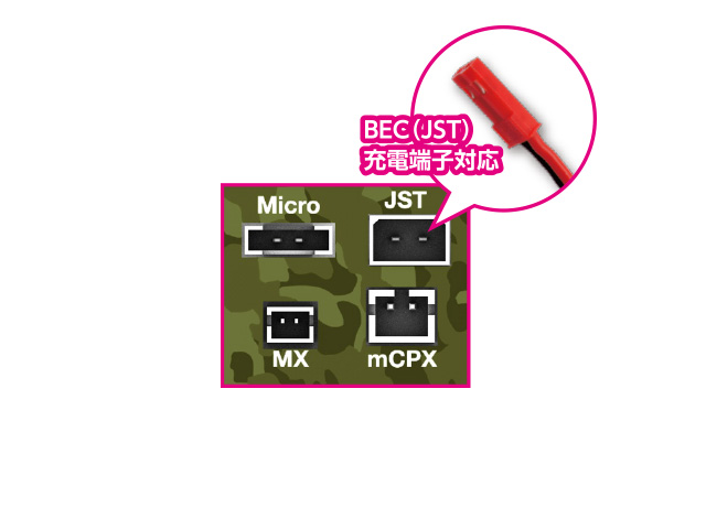 - BEC(JST)充電端子を装用してより使いやすく進化
