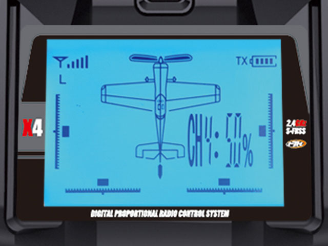 • 送信機の液晶ディスプレイにはブルーバックライト装備、操作した舵をディスプレイに表示
